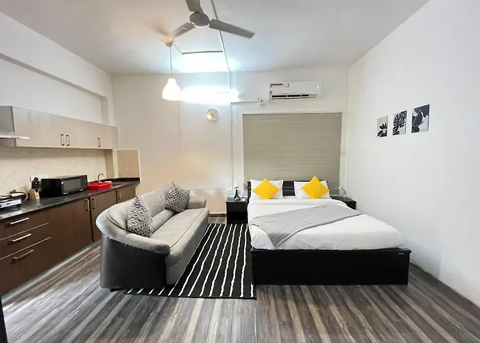 There also is a kitchen, complete with an electric kettle, a fridge, and kitchenware. The restaurant Sodabottleopenerwala is nearly 5 minutes' walk from the apartment. Guests are accommodated within 40 km of Hyderabad Rajiv Gandhi International airport.